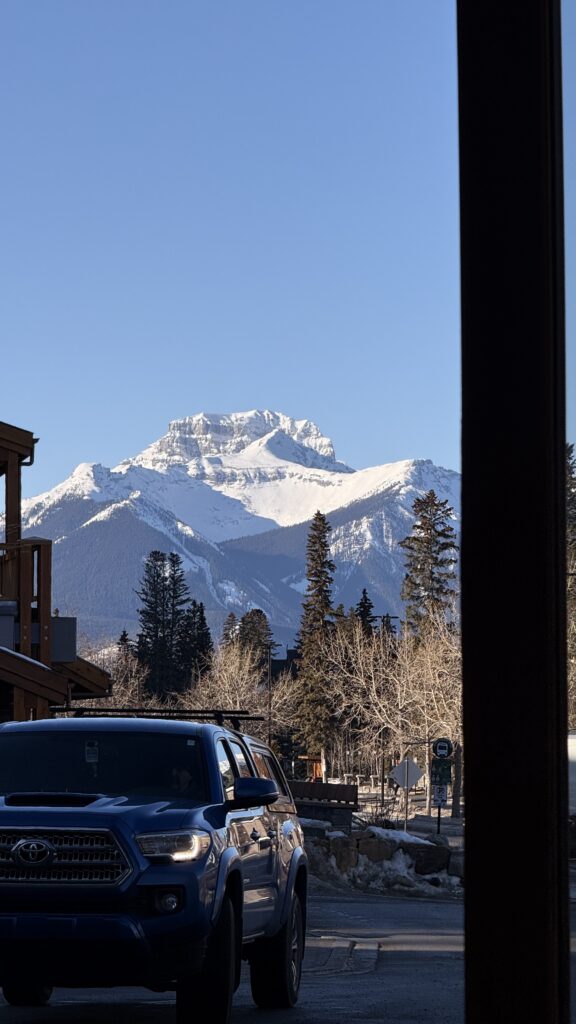 We stayed at Hotel Canoe & Suites, tucked along the edge of Banff Avenue. With Sudden Sally restaurant and café onsite, mornings felt easy and unhurried. Tanner headed out to snowboard the SkiBig3, his parents spent their days sightseeing around town and I settled in with my laptop and more than a few cups of coffee. It quickly became the perfect home base for each of us. The location, the pricing and the overall feel of it truly made the whole trip worthwhile.